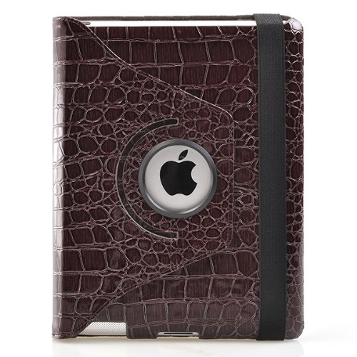 review and image ATC Amazing Brown crocodile PU leather case for Apple iPad 2 all Tablet with 360 degree rotating